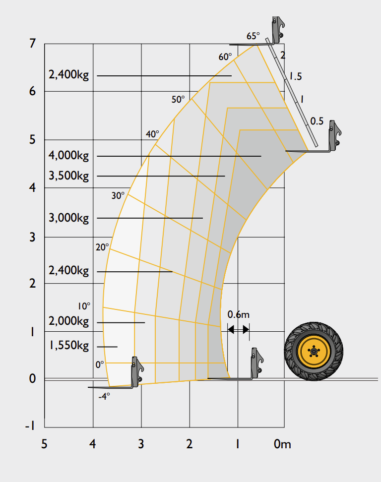 Lift capacity at full reach: 1550kg