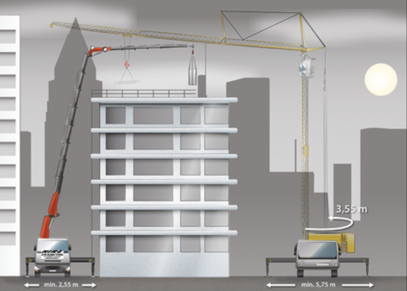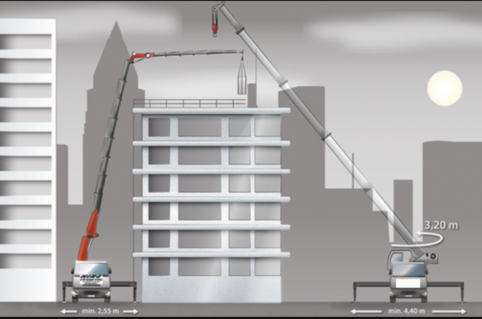 Meister Solution's knuckle boom cranes provide significant advantages over conventional telescopic cranes or standard mobile construction cranes, particularly in challenging urban environments like inner-city sites or high-density built-up areas. Here, restricted traffic flow, narrow streets, or limited workspace often prevent full stabilizer deployment—meaning cranes might only extend outriggers on one side, partially, or not at all—which can compromise stability and operational flexibility.
